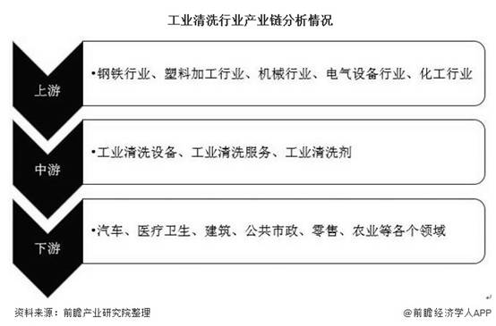 工業(yè)清洗行業(yè)主要包含工業(yè)清洗設(shè)備、工業(yè)清洗服務(wù)、工業(yè)清洗劑,產(chǎn)業(yè)鏈可示意如下: